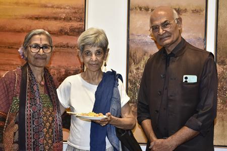 The distinguished chief guest, Amrit Gangar, an eminent film historian and cultural theorist, inaugurated the show with a thoughtful address. Gangar praised Kapadia’s ability to transform abstraction into an evocative language of emotional and cultural resonance, connecting the realms of art and philosophy and drew attention to the conceptual layering in Kapadia’s art, aligning it with traditional Indian philosophies and the rhythms of nature.