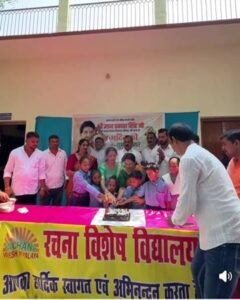 At Rachna Special School, a cake-cutting ceremony was held with the children, and two inverter batteries were gifted to the school.