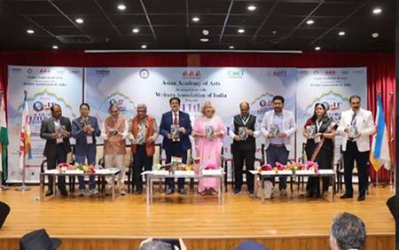 Noida: A moment of pride and inspiration marked the 11th Global Literary Festival Noida as the much-awaited biography of Dr. Sandeep Marwah, titled “Anantata Ki Rah Par”, was grandly released amidst a gathering of distinguished authors, diplomats, and literary personalities.